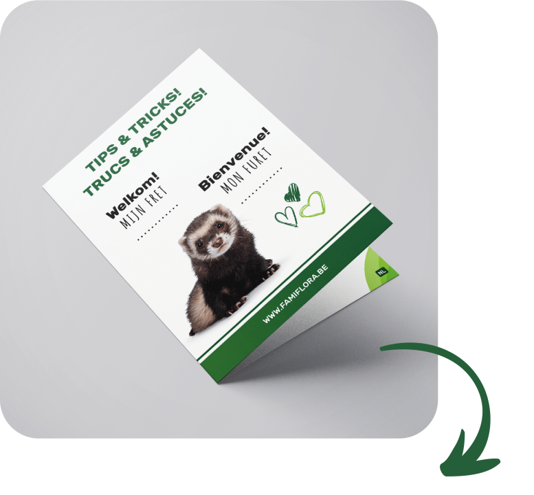 • Het zijn eerder gevoelige dieren. De eerste kenmerken die erop wijzen dat een fret zich niet goed voelt, zijn een stugge of kalende vacht, een stinkende bek, een vuile neus of diarree. Raadpleeg dan zeker je dierenarts.