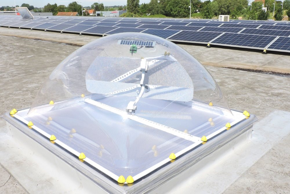 Wij hebben een Lightcatcher-lichtkoepel geïnstalleerd in de entreehal van onze winkel. In deze koepel zit een spiegel die zich, dankzij sensoren met zonnecellen, automatisch richt naar het zonlicht en dit langs de koepel verspreidt. Op die manier bekomen we gemiddeld 10u per dag aangenaam daglicht binnen en kan het kunstlicht uit.