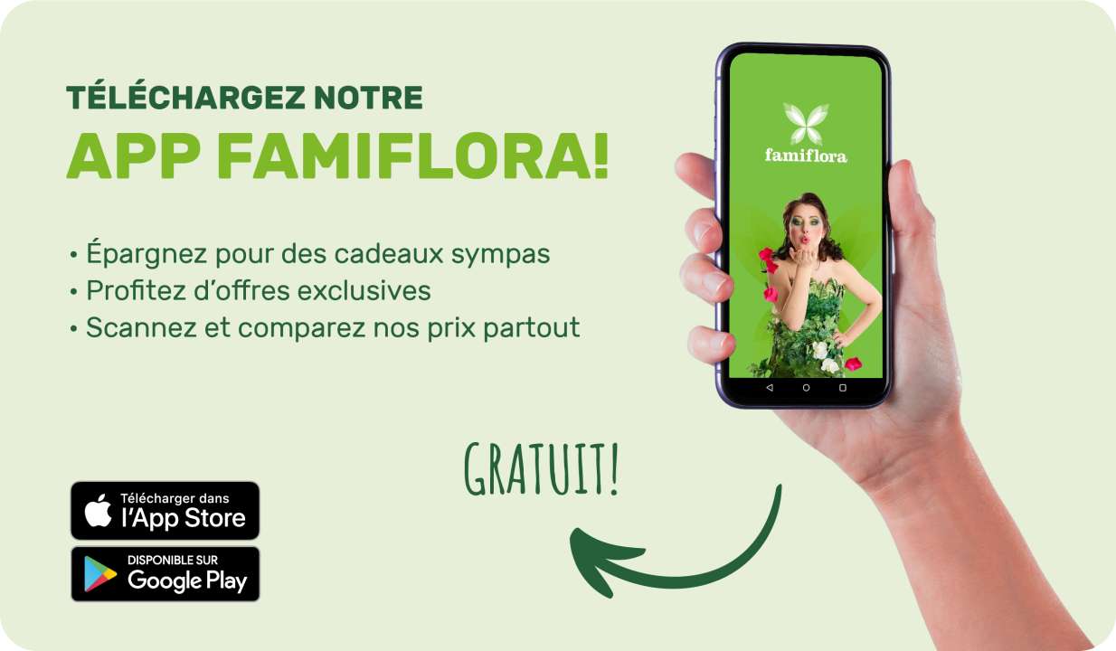Grâce à l'application Famiflora gratuite, les visiteurs peuvent épargner pour obtenir des réductions et des articles gratuits, bénéficier d'avantages exclusifs et scanner et comparer les prix en magasin. Disponible sur iOS et Android.