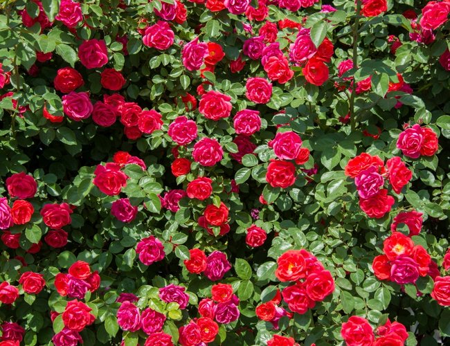 • Les roses en grappes présentent plusieurs fleurs par tige. Elles sont souvent utilisées dans des plates-bandes et atteignent une hauteur de 50 à 100 cm.