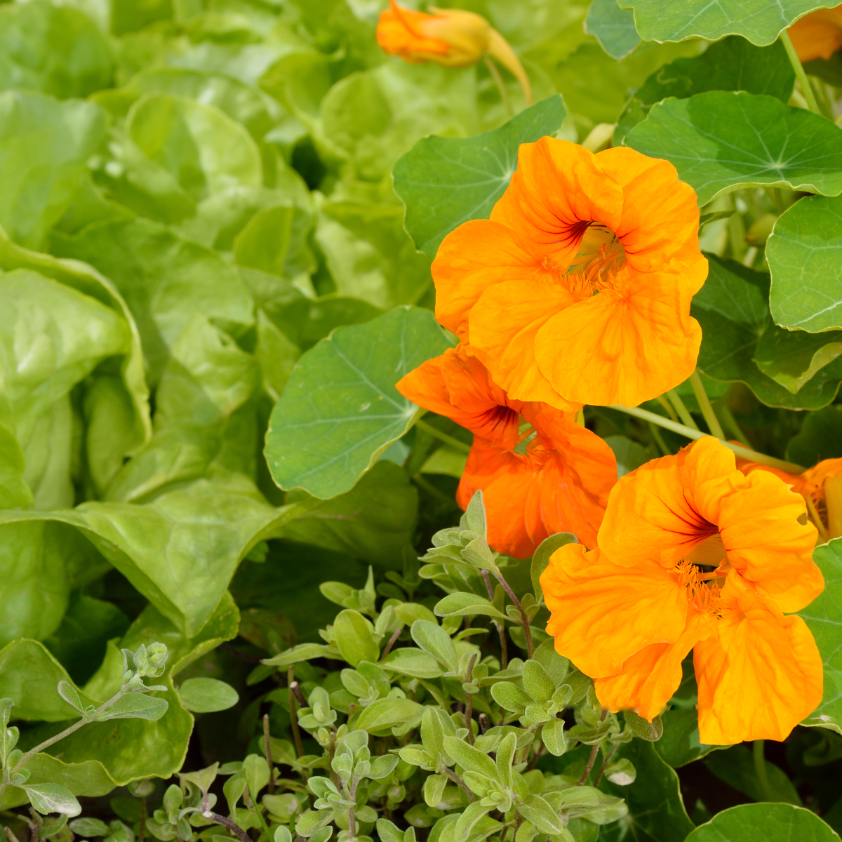 - Fleurs (comestibles ou ornementales) : capucine, calendula, bleuet