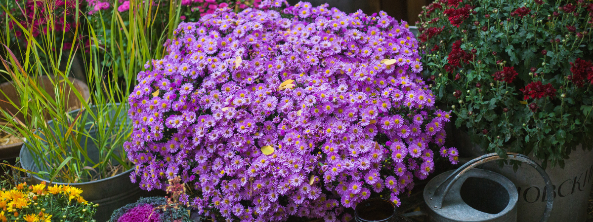 Les chrysanthèmes sont le symbole même de l’automne. Leur floraison compacte, souvent en forme de boule, en fait des choix parfaits pour les massifs, mais aussi pour les pots et jardinières sur la terrasse ou le balcon.