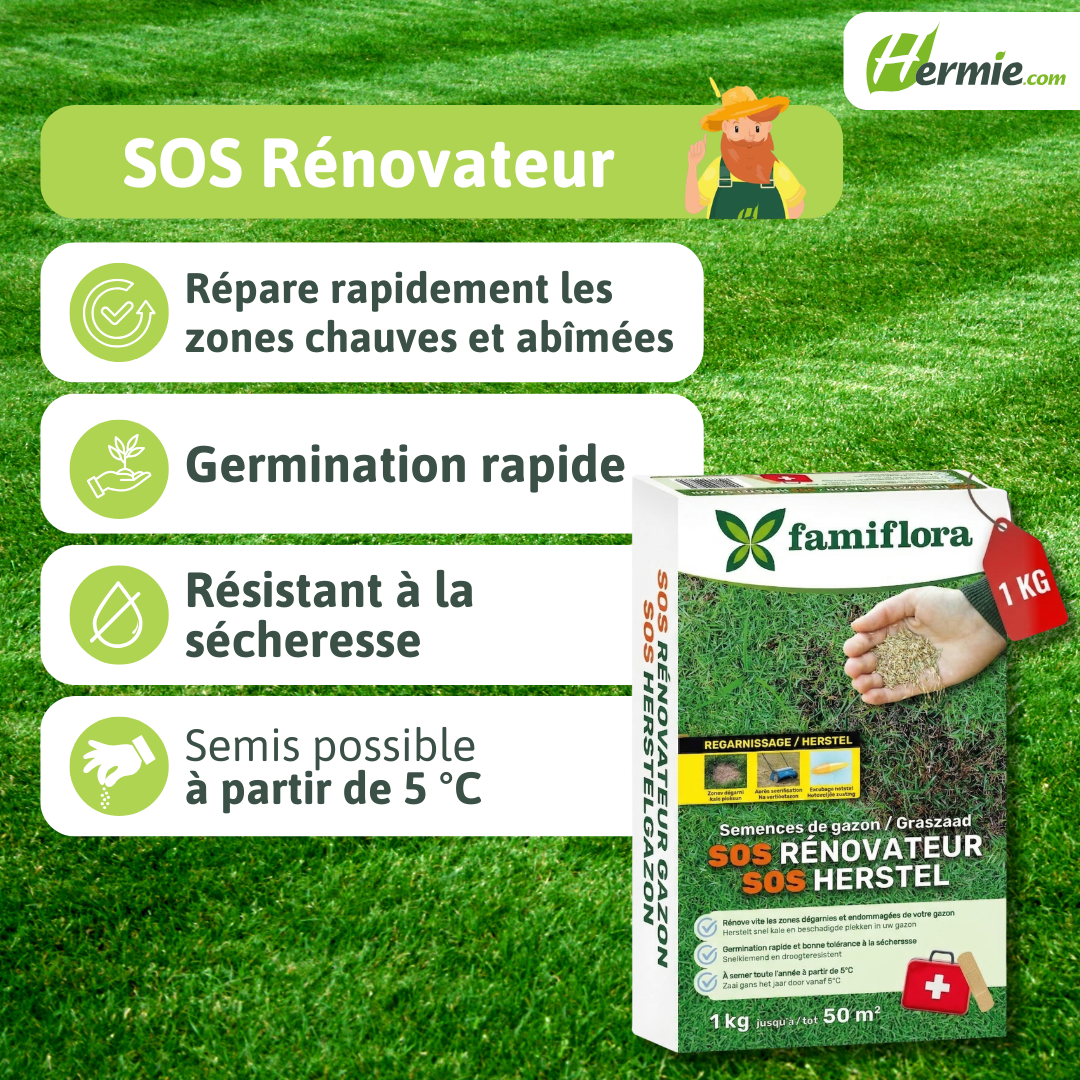 Les semences de gazon de réparation Famiflora SOS sont spécialement conçues pour la réparation et le sursemis d' une pelouse existante. 🌱