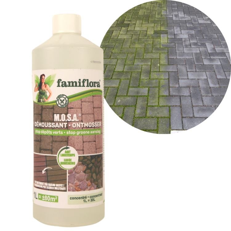 L'antimousse et nettoyant de dépôts verts MOSA élimine efficacement et économiquement tous les dépôts de mousse et de verdure en l'espace de quelques jours. Vous n'avez pas besoin d'utiliser une brosse à récurer ou un équipement coûteux et vous pouvez très facilement appliquer ce désembueur sur n'importe quelle surface sans l'endommager (même le zinc, la pierre ou les surfaces peintes ne courent aucun risque). Ce nettoyant vert pour dépôts est idéal pour les clinkers, le bois, le marbre, les meubles de jardin, les pierres, les toits, etc.