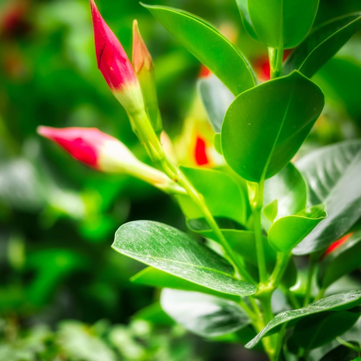 La Mandevilla est une belle plante grimpante qui fleurit avec de grandes fleurs en forme de trompette de différentes couleurs, notamment rose, rouge et blanche. Cette plante est idéale pour égayer les terrasses, les balcons et les jardins, et est souvent utilisée pour attirer l'attention sur les pergolas, les clôtures et les murs.