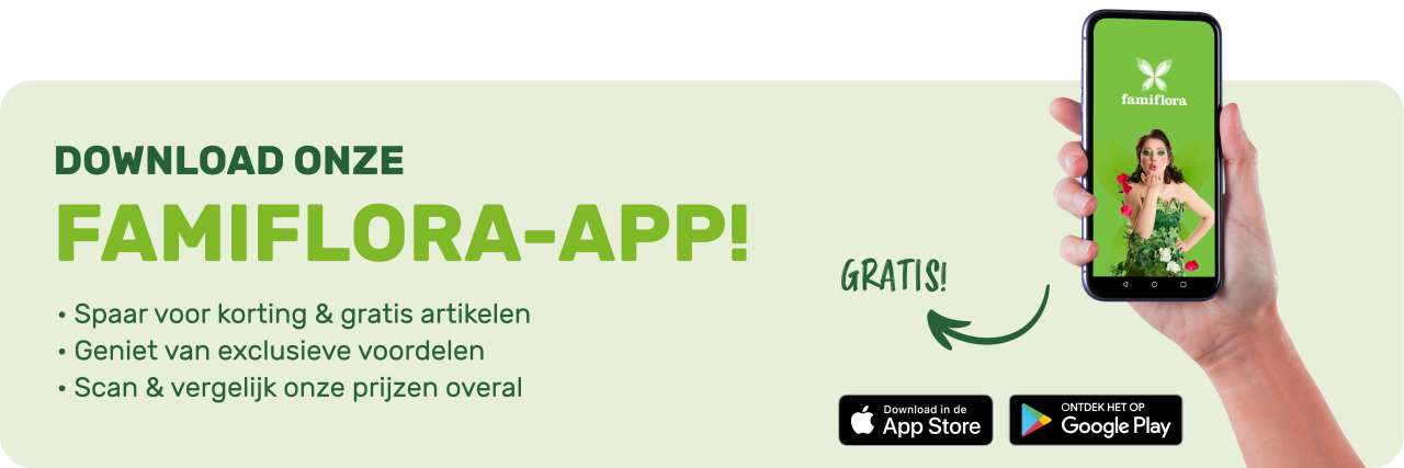 Je ontvangt voor elke euro die je uitgeeft 2 Fami-spaarpunten. Je kan je spaarpunten verzilveren voor kortingsbonnen of andere leuke beloningen. Voor 150 Fami-punten ben je bijvoorbeeld al trotse bezitter van onze handige Famiflora shopping tas! Maar er valt nog heel wat meer te krijgen, check snel de rubriek 'Beloningen' in de app.