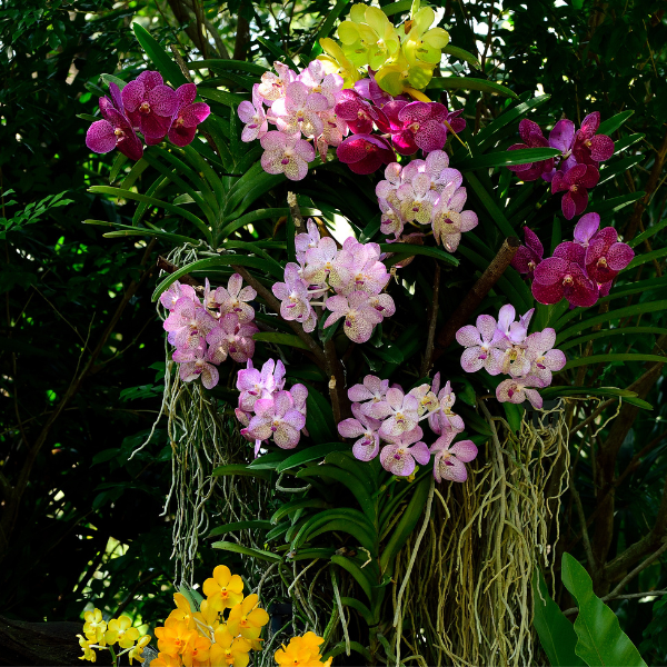Vanda is een bijzondere orchidee waarbij de wortels los hangen in de lucht. Deze orchidee heeft dus geen aarde nodig. Vanda orchideeën zijn beschikbaar in alle kleuren van de regenboom. De vanda groeit het best op een lichte standplaats in een glazen vaas. Vul de vaas twee keer per week voor de helft met lauw water en leeg de vaas na ongever een halfuur. De Vanda houdt van veel licht, maar geen direct zonlicht. De optimale temperatuur is tussen 15 en 25°C.