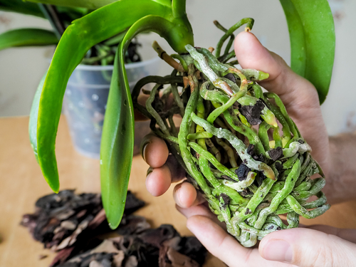 Bij het aankopen van een orchidee, raden we je aan om best eerst naar de wortels te kijken. Hebben de wortels een donkerrode kleur? Dan zijn de wortels helaas dood.