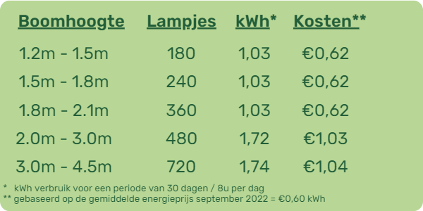 30 dagen 8 uur per dag de kerstboom verlichten kost minder dan €1