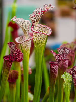 Deze winterharde vleesetende plant groeit in de moerassige gebieden van Noord-Amerika en Canada. Hij kan 30 cm tot 1m20 hoog worden en vangt zoveel insecten dat hij soms last heeft van indigestie (een echte veelvraat, deze Sarracenia!). Maar geen paniek, het enige wat je hoeft te doen is zijn val wegknippen om zijn darmflora aan te vullen. Zoveel insecten inslikken is vermoeiend. Daarom heeft deze vaste plant een rustperiode nodig van november tot maart.