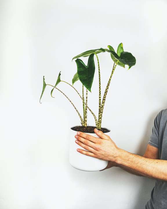 • Jouw Alocasia water geven is best eenvoudig: zorg ervoor dat de aarde nooit helemaal uitdroogt. Tik met je vinger lichtjes op de aarde. Als er geen potgrond aan je vinger blijft plakken, dan is het tijd om je plant water te geven.
