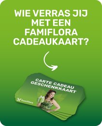 Op zoek naar het perfecte cadeau? Met de Famiflora geschenkkaart tover je gegarandeerd een lach op het gezicht van de ontvanger. Geschikt voor iedere gelegenheid!
