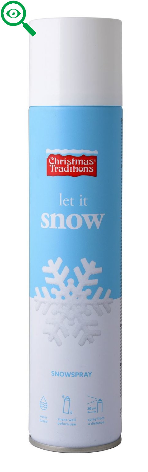 Tip van kerstelf Marcel: Schud de spray goed voor gebruik. Zo wordt de sneeuw mooi over het oppervlak verdeeld.