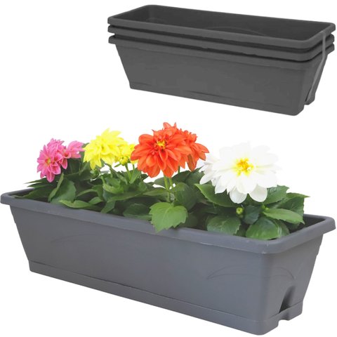 Balkonbak Lot van 3 Donkergrijs 50x15x12cm