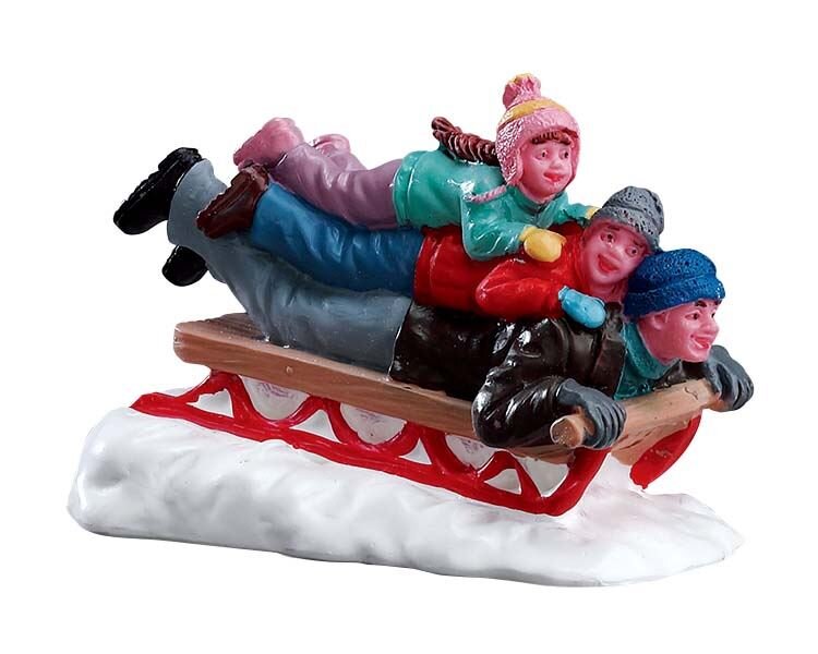 Je kan naar hartenlust jouw eigen miniatuurdorp opbouwen en uitbreiden met Sledding Met Dad van Lemax.