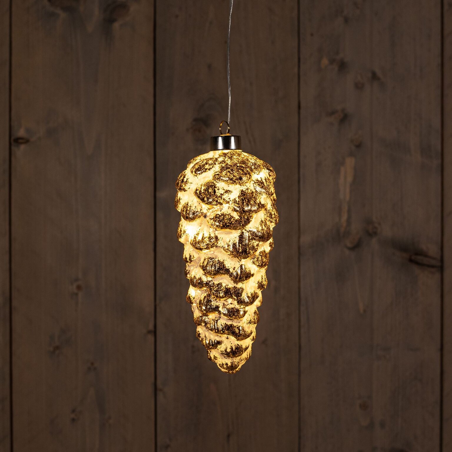 b.o. glas denneappel wit-goud 20cm /15 led classic warm 2xaaa