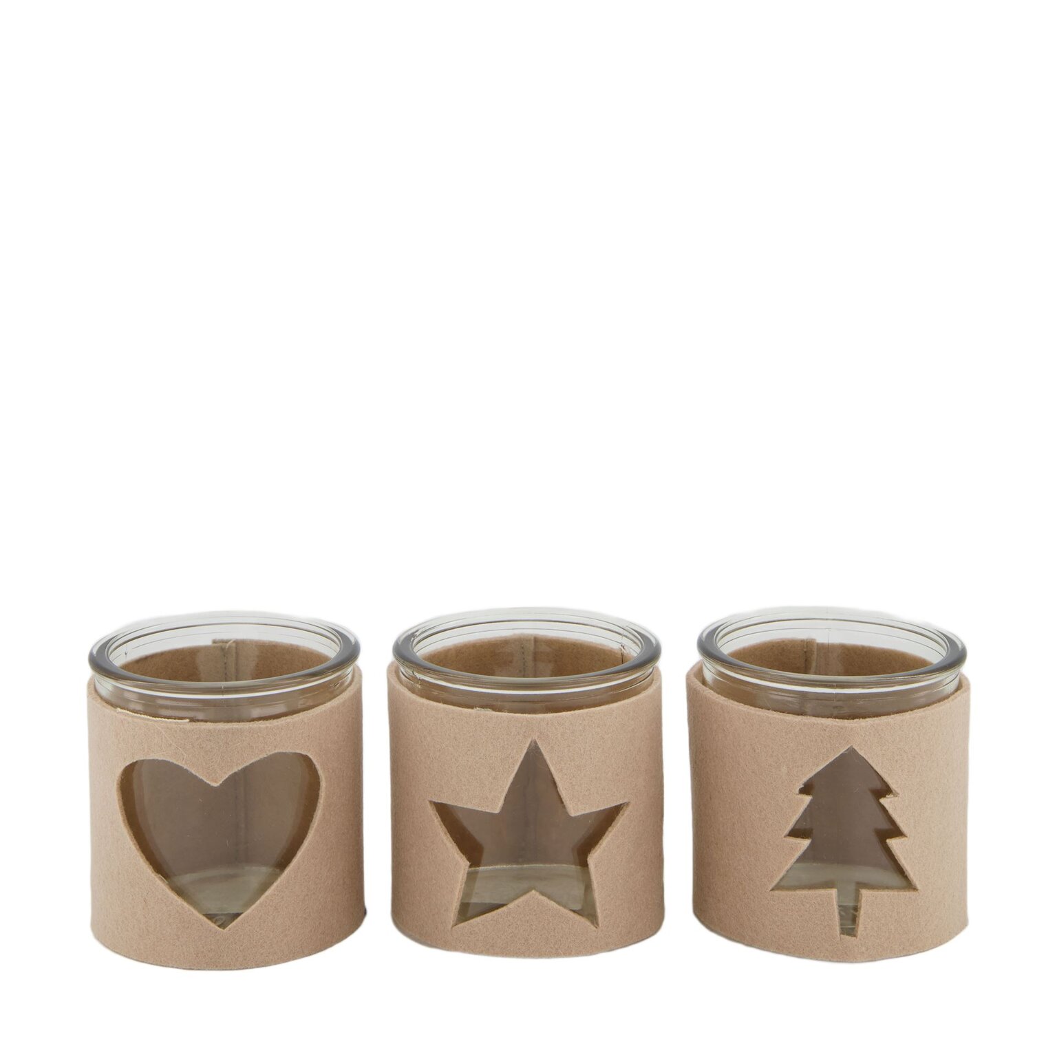 Theelichthouder met stof 9x9cm beige