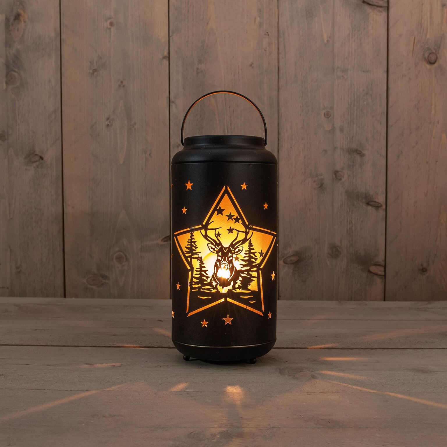Lantaarn D12xH25,5cm zwart goud met timer
