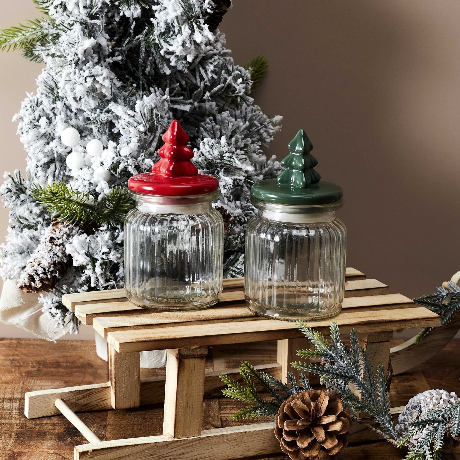 Voorraadpot glas met deksel H15cm - Kerst 2ass