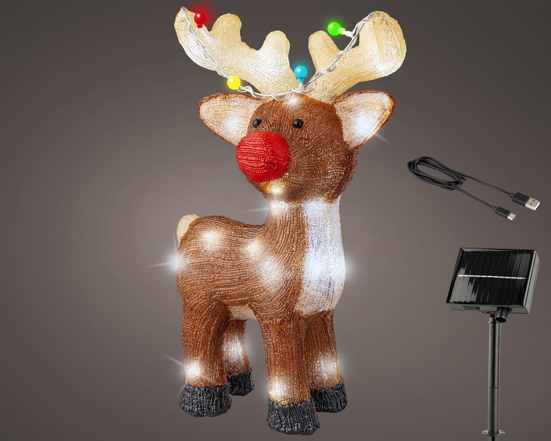 Rendier acryl 33x47cm 48Led solar buiten