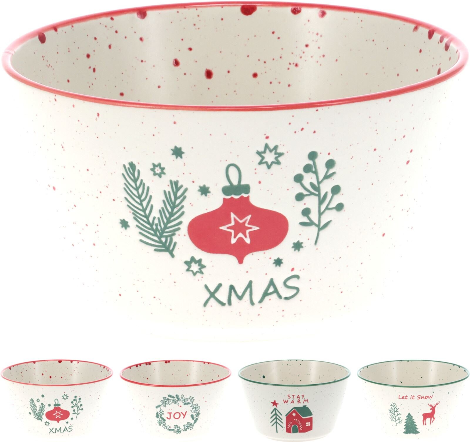 Ontbijtkom D14xH8cm aardewerk Kerst 4ass