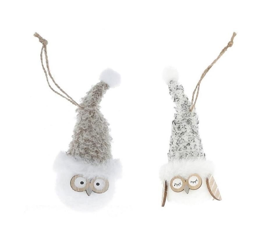 Hanger uil met muts 8x23cm stof 2ass
