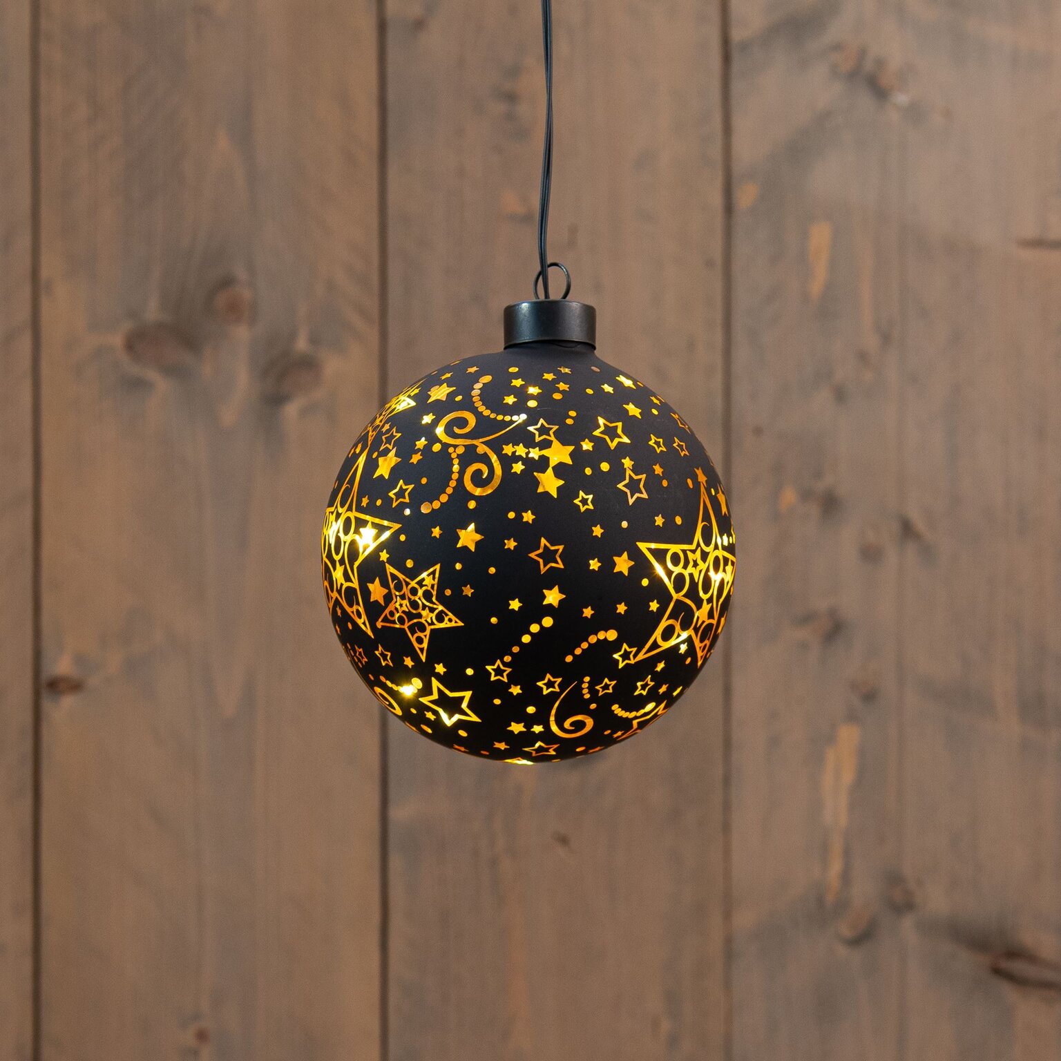 Hanger kerstbal D12cm 10Led warm wit zwart