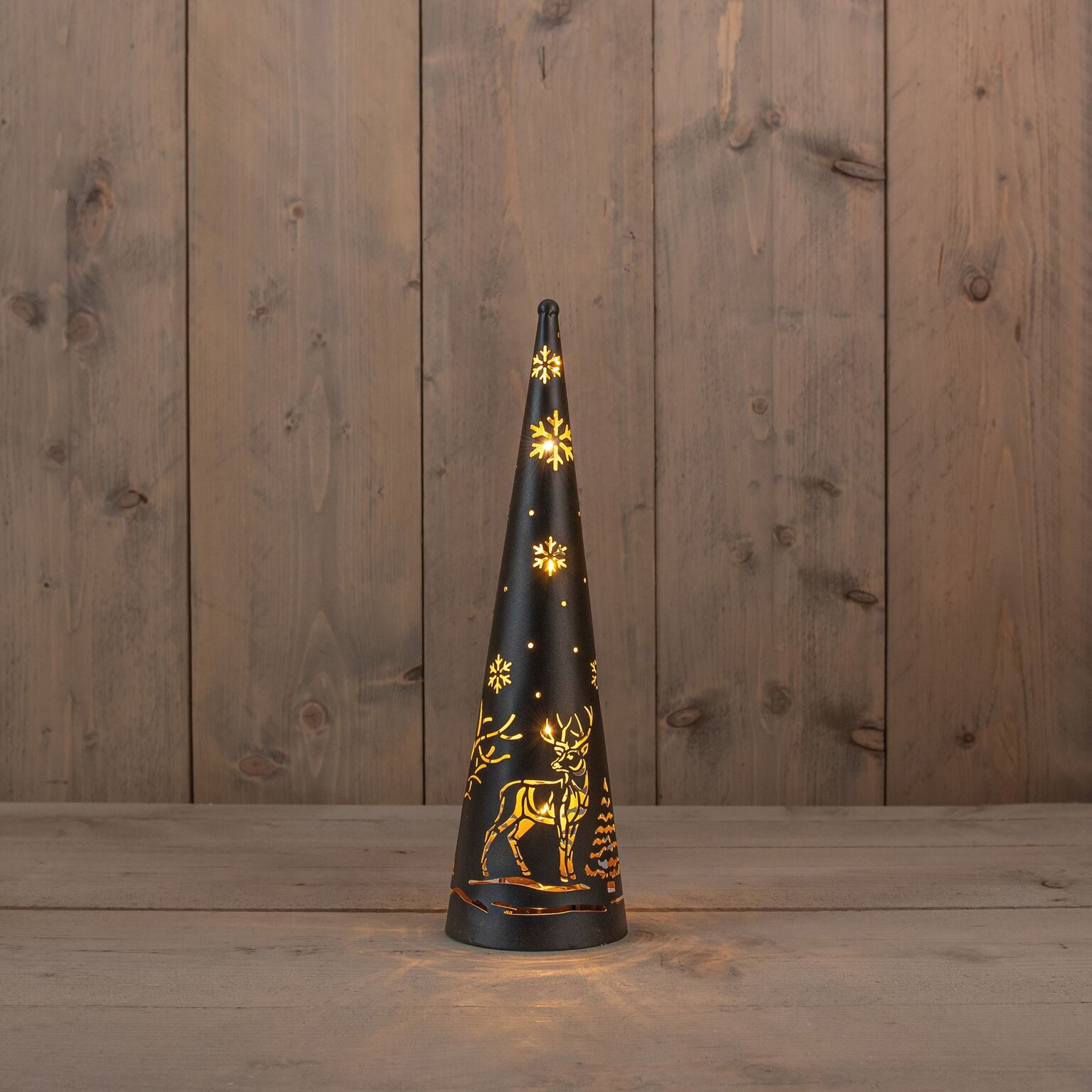 Kegel met hert sneeuwvlok D10xH34cm 20Led zwart