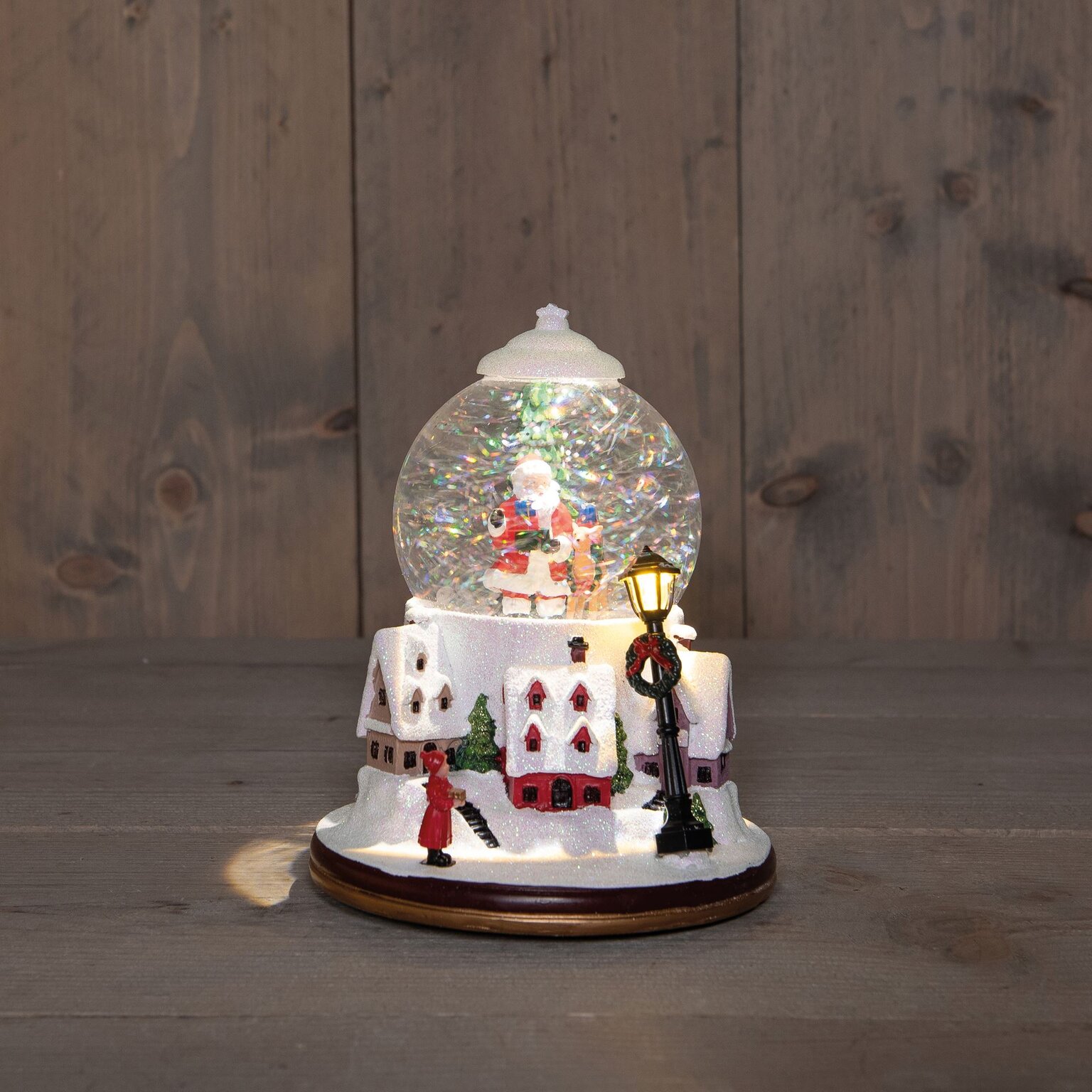 Sneeuwbal met Kerstman 21x15cm warm wit