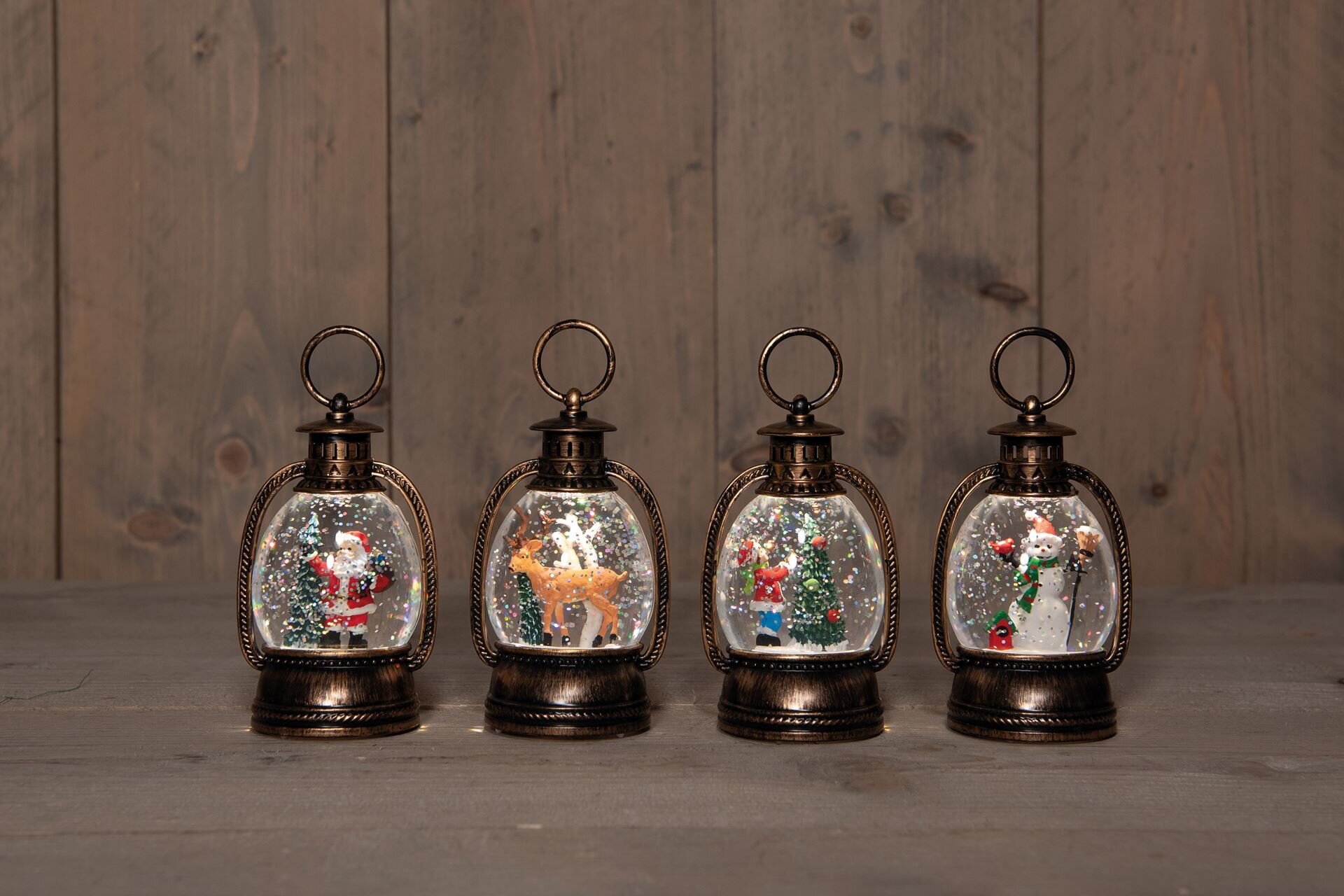 Lantaarn sneeuwbal 13x8cm warm wit 4ass
