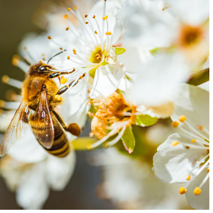Bijen zijn onmisbare bestuivers voor fruitbomen en fruitheesters. Als ze van bloem tot bloem vliegen op zoek naar nectar, dragen ze stuifmeel over van de ene bloem naar de andere, wat essentieel is voor de vorming van fruit. Overweeg om naast fruitbomen en -heesters ook bijenlokkers zoals lavendel, zonnehoed (Echinacea) of een vlinderstruik (buddleja) te planten.