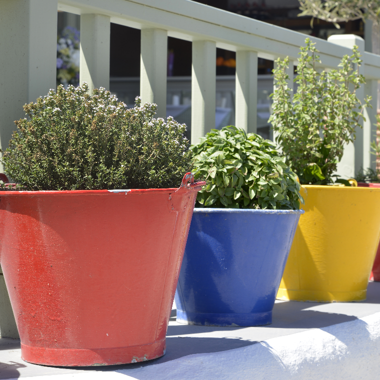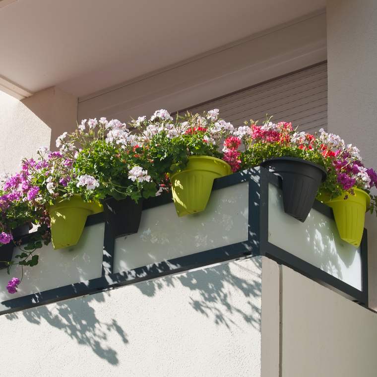 Een paar prachtige grote bloembakken, of een groot aantal potten en potjes met stekjes en kruiden... alles kan op uw eigen balkon. Bij Famiflora vindt u complete series potten en bakken in diverse kleuren, stijlen en materialen. Een paar tips: let op dat er altijd gaten in de potten of bakken zitten om het teveel aan water af te voeren. Dek de gaten af met wat potscherven of een laagje grind, dan kunnen ze niet dichtslibben. Laat 's winters liever geen aardewerken potten met aarde erin buiten staan. Als vochtige aarde bevriest, zet hij uit, waardoor de pot kan barsten.